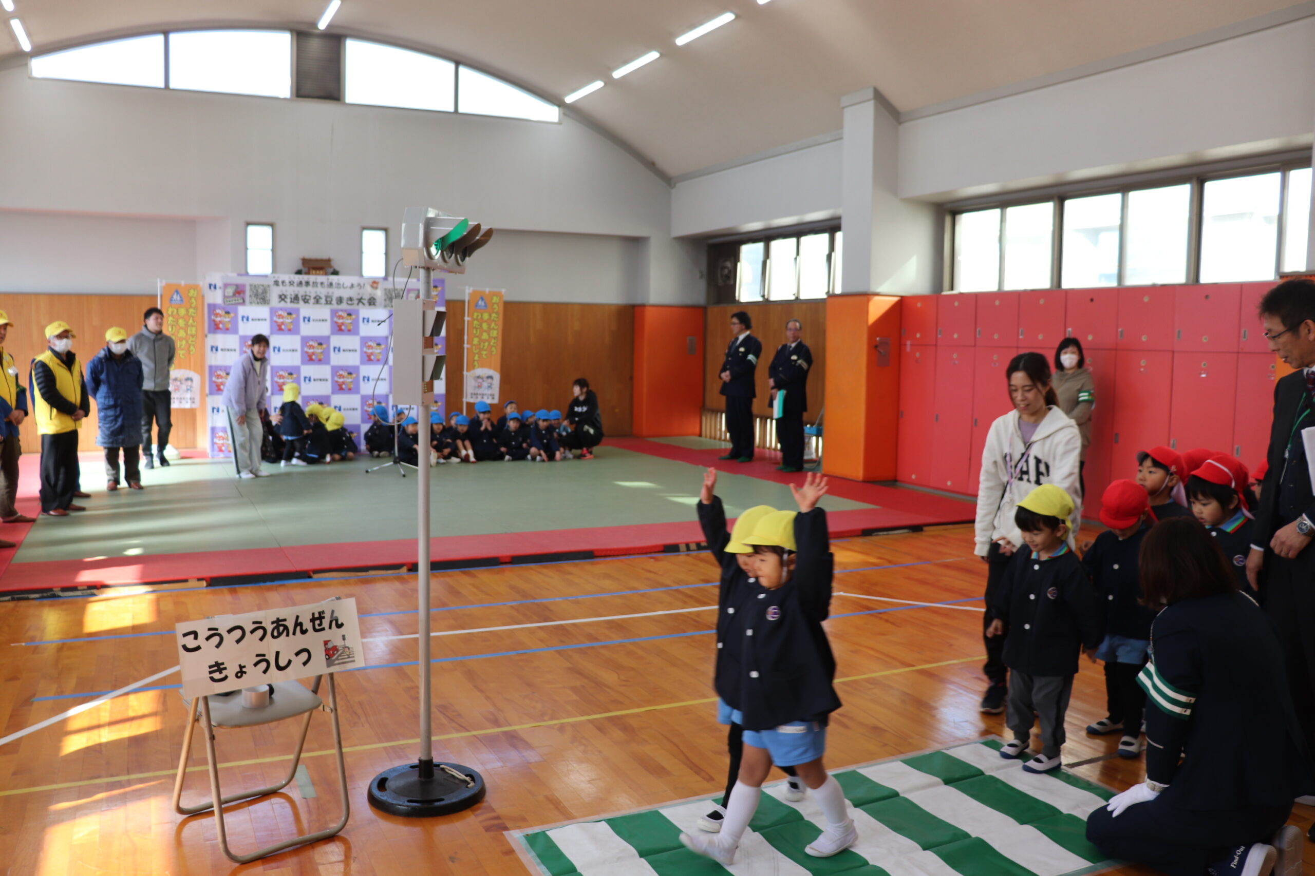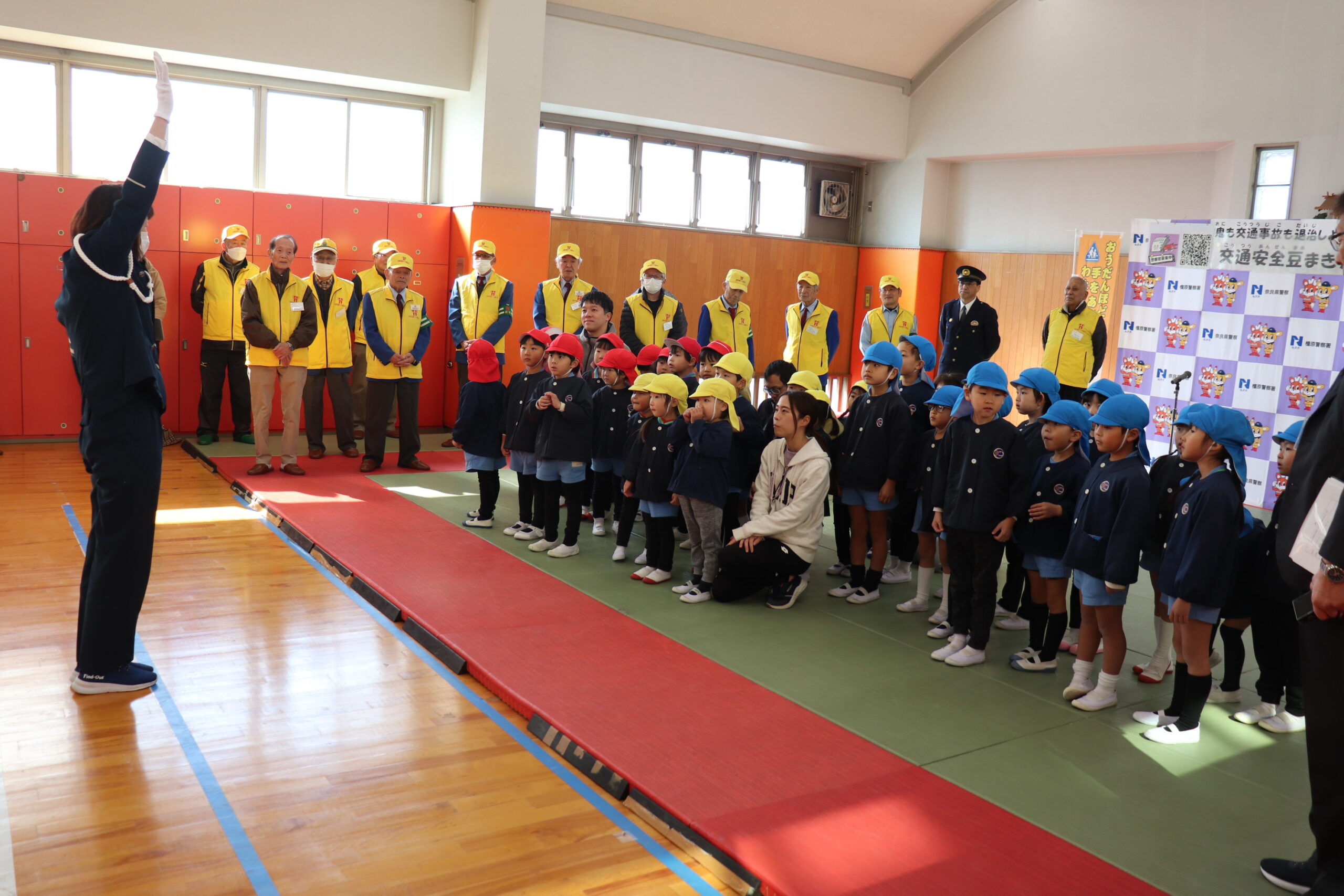 2026年2月5日 支部協会活動状況 橿原支部協会が明日香幼稚園児と「交通安全豆まき大会」を開催 交通安全協会橿原支部協会(西岡会長)では、橿原警察署及び橿原地区交通対策協議会とともに、令和8年2月3日(火)午前10時30分ころから橿原警察署で明日香幼稚園児の皆さんに横断歩道の渡り方教室を行った後、「交通安全豆まき大会」を行いました。